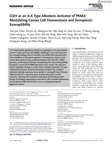 【合作研究成果】 GSH as an A-A Type Allosteric Activator of PKM2: Modulating Cancer Cell Homeostasis and Ferroptosis Susceptibility 榮登 「 Advanced Science」 頂尖國際期刊